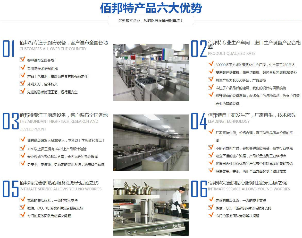 天津佰邦特廚房設(shè)備有限公司2016年創(chuàng)建于天津市北辰區(qū),是一家集科研、設(shè)計(jì)、制造、銷(xiāo)售、安裝、維修服務(wù)為一體的專(zhuān)業(yè)廚房設(shè)備生產(chǎn)企業(yè),是目前天津市乃至沿海地區(qū)競(jìng)爭(zhēng)實(shí)力強(qiáng)的商用廚房設(shè)備企業(yè)之一。主營(yíng)天津廚具,天津廚具廠(chǎng),天津廚房設(shè)備,天津廚具設(shè)備,天津廚房工程、天津廚具工程,天津廚房設(shè)備公司,天津不銹鋼廚具批發(fā),天津廚房設(shè)備廠(chǎng)家,天津酒店廚房設(shè)備工程,天津工廠(chǎng)廚房設(shè)備,天津廚房設(shè)計(jì),天津白鐵工程,天津廚具批發(fā),天津廚房排煙工程等配套設(shè)施。累積了豐富的實(shí)踐經(jīng)驗(yàn),蓄備了一支高素質(zhì)、專(zhuān)業(yè)化的人才隊(duì)伍。歷年來(lái)秉承著“創(chuàng)新、務(wù)實(shí)、求真“的企業(yè)......